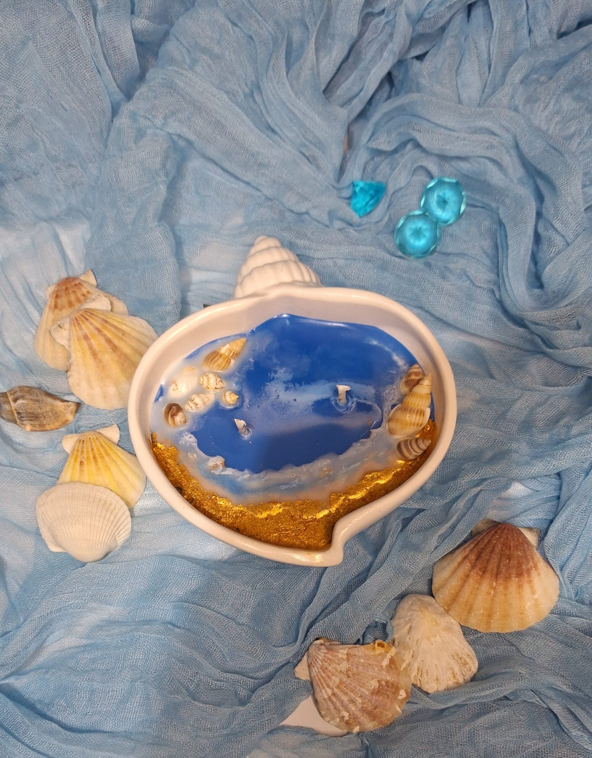 🫙 Caracola decorativa y reutilizable, con caracolas reales incrustadas y olas de cera