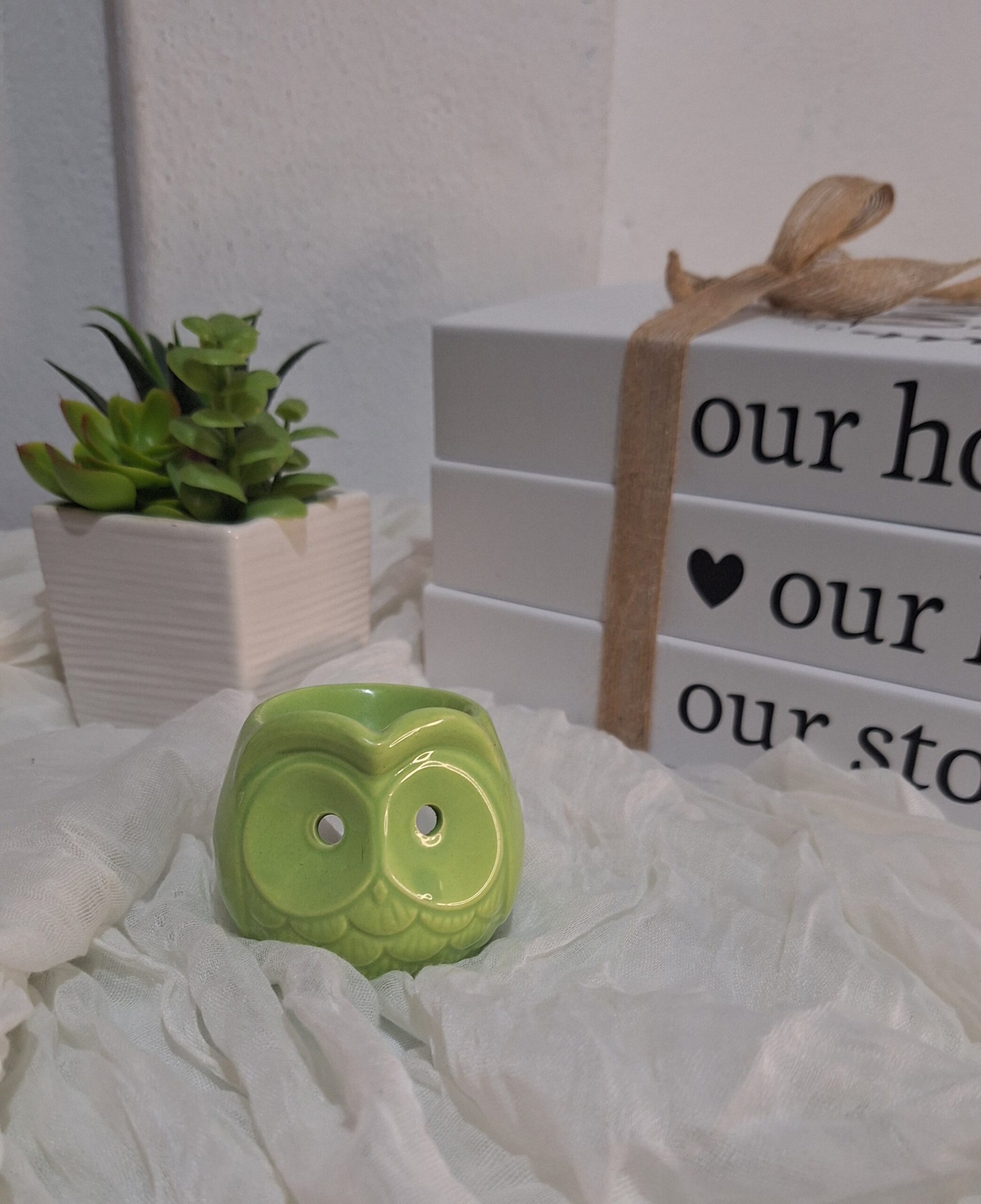 Este encantador quemador en forma de búho en tono verde bosque es una pieza ideal para añadir un toque natural y mágico a tu espacio. Su tamaño compacto (6 cm aprox.) lo hace perfecto para cualquier rincón, sin dejar de ser funcional y decorativo.